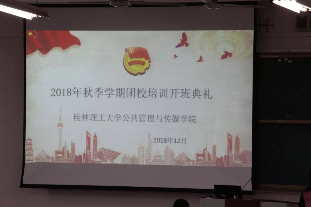2018年12月4日下午,我校公共管理与传媒学院2018—2019年秋季期团校培训开班典礼在雁山校区06409教室举行。
