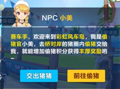 这位金发的偷猪官小姐姐叫小美。听说把猪仔交给她就能换积分和奖励之类的~不熟悉偷猪规则的车手还可以跟小美多多交谈,她可是会给你不少实用的偷猪小技巧呐!