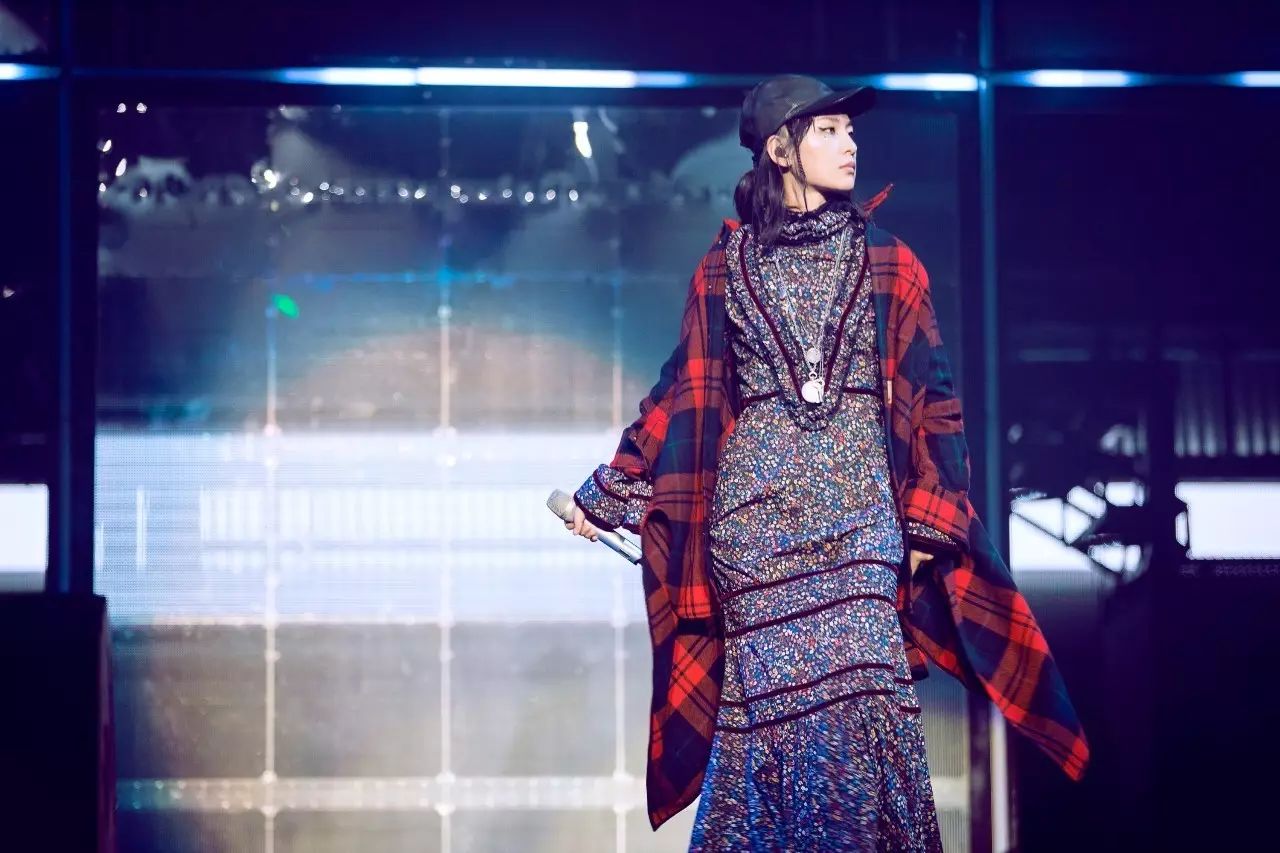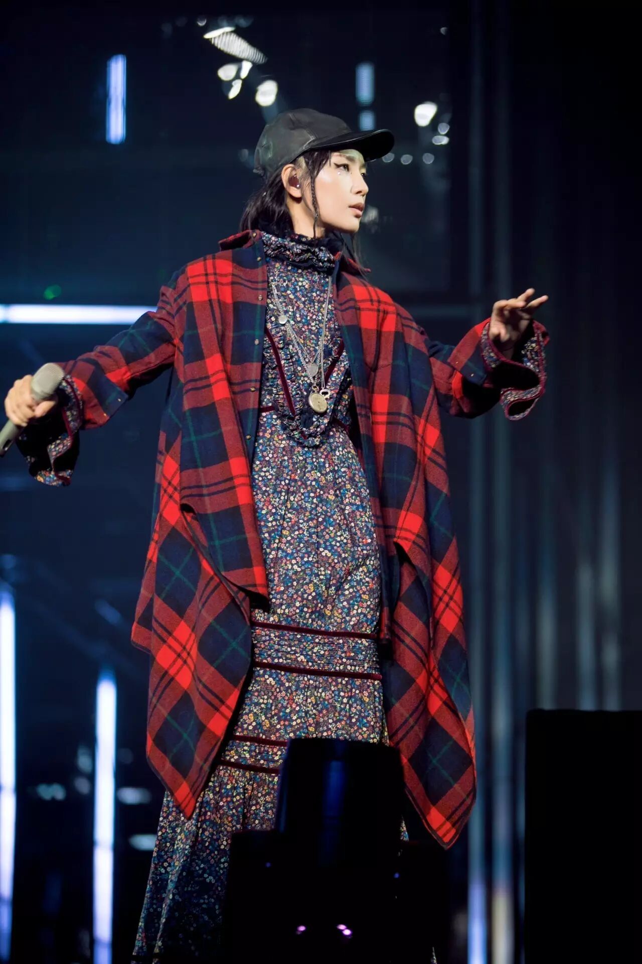 周笔畅身穿DSQUARED2 2017秋冬系列秀款花朵高领连衣裙搭配品牌2017秋冬系列燕尾格纹衬衫亮相个人演唱会上海站,繁花盛开在裙装上,浪漫随性,随长裙裙摆摇曳舞动。外搭一件格纹燕尾衬衫增添潮流个性,不同的混搭造型DSQUARED2都能恣意呈现摇滚的浪漫。