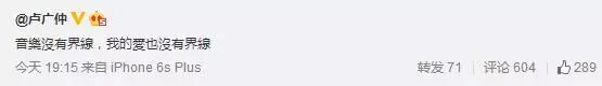 就在刚才,20日晚上19:15分,,卢广仲在新浪微博疑似对对黄安的举报进行回应,打出了音乐没有界限的旗号!