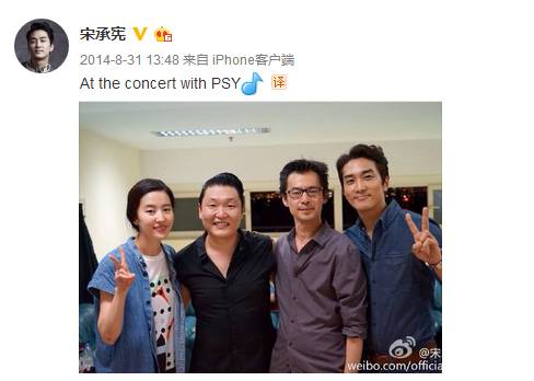 2014年8月4日影片第一天开工哦,宋承宪晒美美的合照。