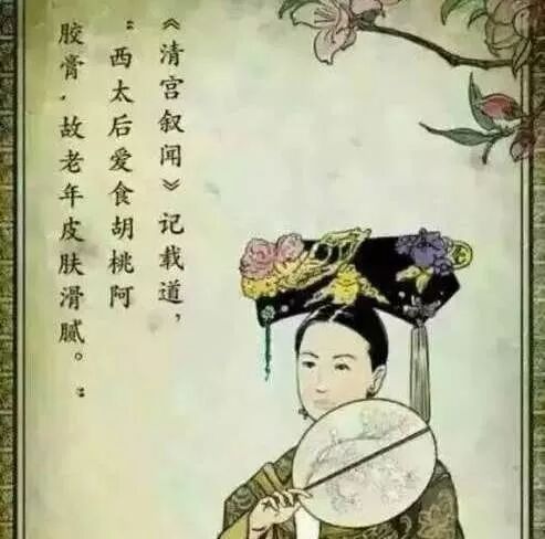 《清宫叙闻》记载道,“西太后爱食胡桃阿胶膏,故老年皮肤滑腻”。