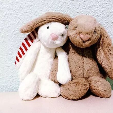 吴佩慈也是这只兔子的铁粉,经常随身携带一只Jellycat的邦尼兔,在社交网站上不止一次流露出对jellycat的喜爱,她说邦尼帮她缓解压力,保持好精神。