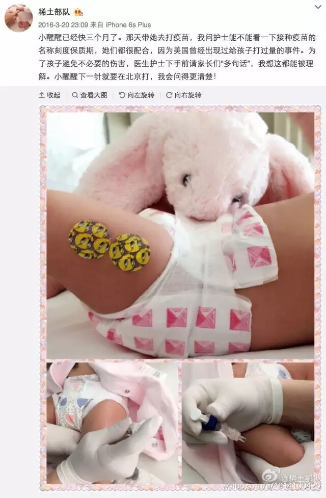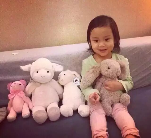 章子怡汪峰的爱女醒醒也有一只Bunny,打疫苗也要同去。