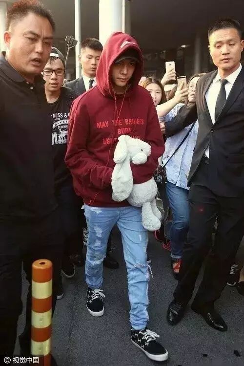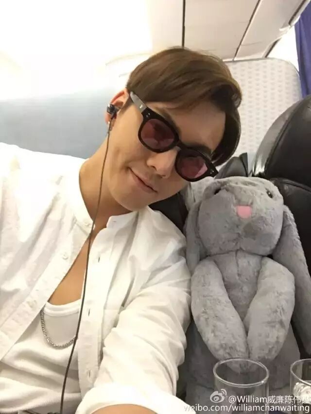 陈伟霆,张大佛爷也是画风突变,坐飞机带着兔子。
