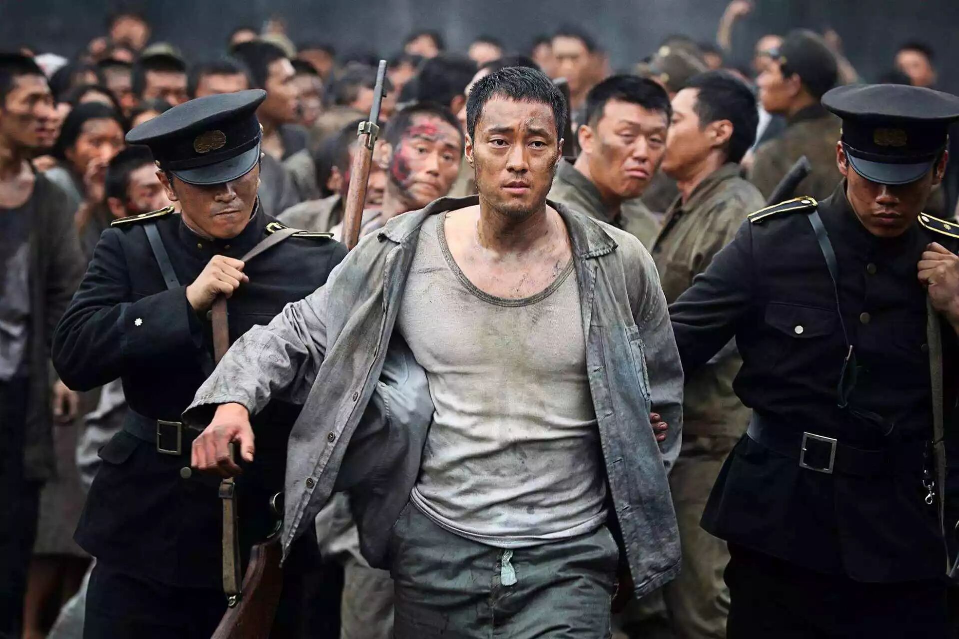 全片最后高潮,朝鲜劳工暴动反抗出逃的大场面戏,调度有方,在一片混乱中,条理清晰的展现出了人性的动荡,对于主旋律的升华也点到即止,没有太多煽情,较为克制。