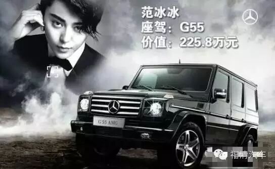 一直被影迷称为“范爷”的范冰冰在这些年的表现十分抢眼,常年占据着各大娱乐头条,“范爷”旗下座驾数量未知,但伴随其出现最多的无疑是辆奔驰G55 AMG,价值逾百万。G级AMG作为奔驰越野系列里面的顶级车型,“一人一车”的制造理念绝对是奢华专属,其硬朗霸气的外观和强悍的越野性能,看来也只有女王级的“范爷”能够Hold住了。