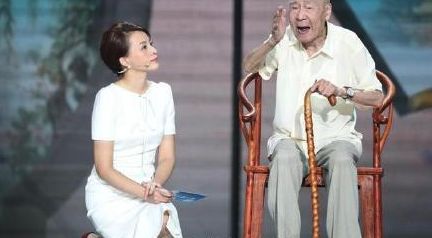 想起之前董卿在某个节目中采访一个96岁高龄的老人——著名翻译家许渊冲老先生,老人家因为年岁大了,便拄着拐杖坐在凳子上。