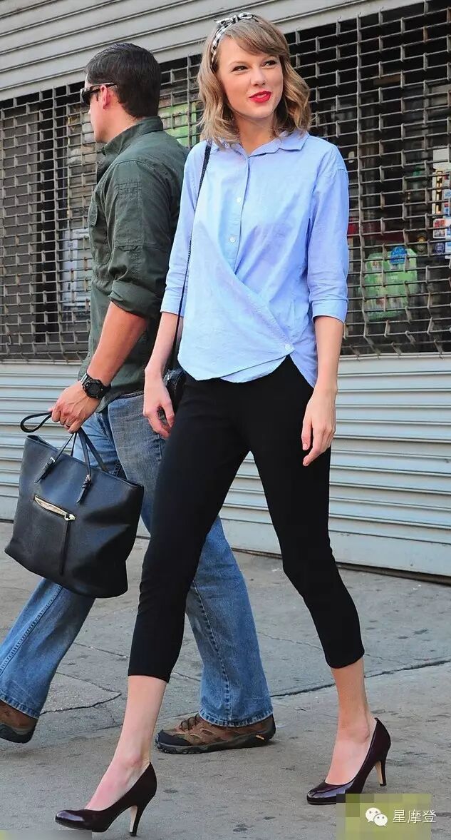 贝嫂也很喜欢穿浅蓝色衬衫。搭配的半身裙简直和衬衫是最完美的CP!