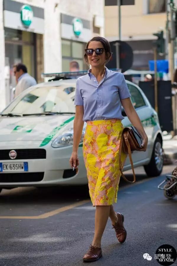 配上印花长裙和精致的尖头鞋,十分适合OL们的装扮,得体不张扬而且显气质。
