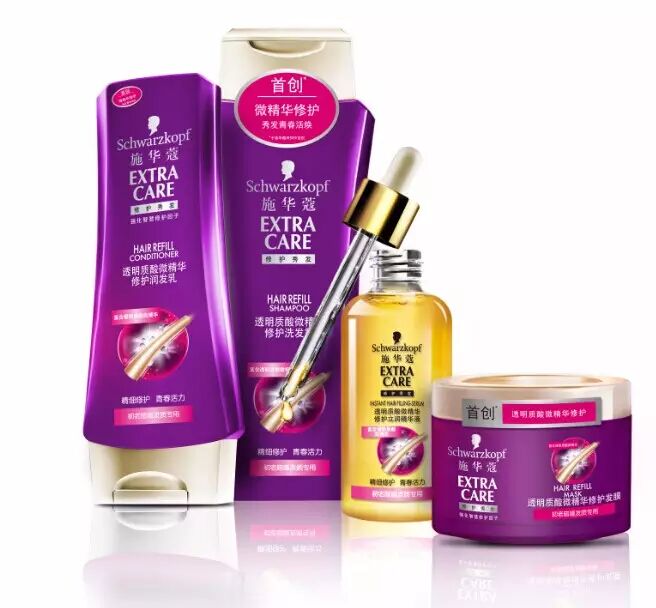 使用施华蔻Extra Care透明质酸微精华系列洗护发产品,获得柔滑秀发质感,染后发丝尤其需要在中段至发梢涂抹小滴管精华,修护受损发丝并提亮发色,为后续步骤打好基础。