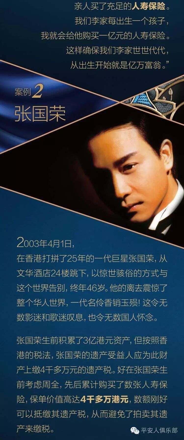 有没有保险真的一样吗?看看张国荣、李嘉诚是如何规划保... 平安人俱乐部 港台男星 2016-09-11 18:07:43 157 创作不易,用心坚持,欢迎请BaGua喝几杯爱心咖啡!打赏并支持本文 打赏并删除本文 保险事业彩铃风暴震撼来袭长按3秒识别二维码进入页面点击就可以开通借助移动互联网腾飞您的保险事业!点击“阅读原文”查看更多平安保险专属彩铃 创作不易,用心坚持,欢迎请BaGua喝几杯爱心咖啡!打赏并支持本文 打赏并删除本文 感谢您的支持鼓励,我会继续努力的!文章地址:用户邮箱:打赏金额:USDT 请输入数字点击”去打赏“,即可进行打赏支持本文章哦 张国荣 About the Author 平安人俱乐部 功能介绍:有一个品牌叫中国平安,有一首歌曲叫《天下平安》,有一种幸福叫《平安福》,有一种专家叫“保险专家”,这里是天下平安人的家园,每一位家人都是平安使者! Related Posts 有没有保险真的一样吗?看看张国荣、李嘉诚是如何规划保... 2016-09-11 18:07:43 发表评论