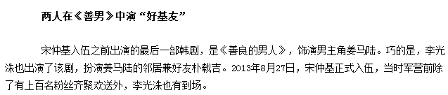 甚至宋仲基还表示,“李光洙是我在服兵役期间最大的力量。”