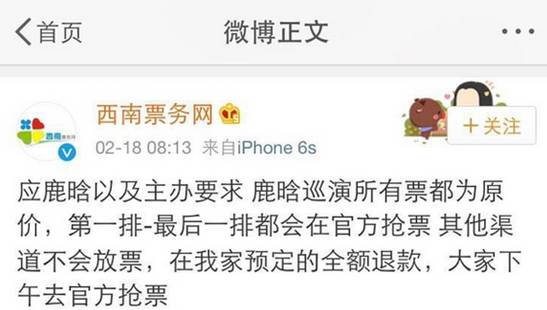 而鹿晗为了粉丝也不止一次与黄牛对抗,他曾坚持演唱会全部实名制销售原价票,拒绝黄牛坑粉丝,成为一时美谈。