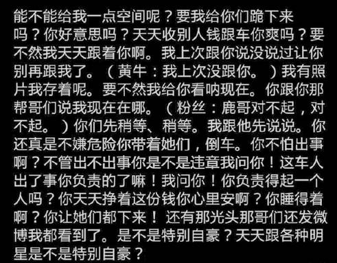 但上周现场录音曝光后,大家才得知真相,原来并非鹿晗骂哭粉丝,反而是他为粉丝生命安全考虑,下车怒斥违章带粉丝追车的黄牛:“这车人出了事你负责的了嘛……你天天挣着这份钱你心里安啊?你睡的着啊?”
