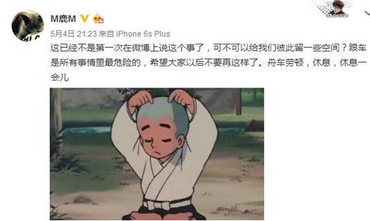 可能觉得不放心,又在微博上再次向粉丝呼吁别再追车。