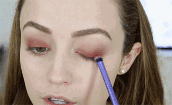 Step 3:用比较扁平的眼影刷,一点一点在眼线位置涂上颜色更深的红棕色眼影,或者在眼尾小三角区域涂上,最后用刷子晕开使各个颜色过渡自然。