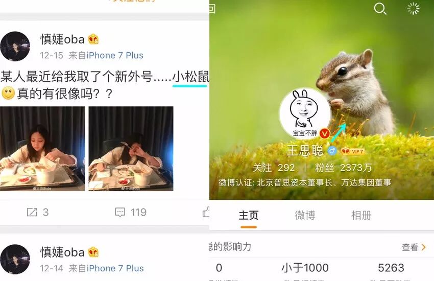 并且慎婕发了条动态说“某人给我取了个外号叫小松鼠”,而恰好王思聪的背景图就是小松鼠