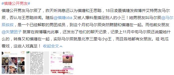 谁曾想,慎婕和男友马尔辰才不是没有故事的男女同学呢,据说慎婕是小三上位,马尔辰是“三里屯炮王”(信息量有点大)