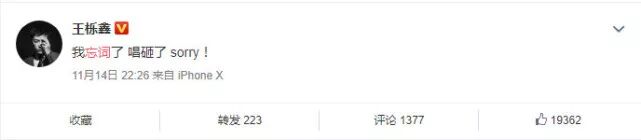 2018全球华语金曲奖颁奖典礼11月14日在澳门金光综艺馆隆重举行,金曲奖也是有不少明星艺人参加了该典礼,作为“快乐男声”出道的王栎鑫也是作为表演嘉宾为大家现场演唱了一首歌曲,不过因为太过紧张忘词。王栎鑫也是之后发文道歉表示: 我忘词了,唱砸了,对不起。