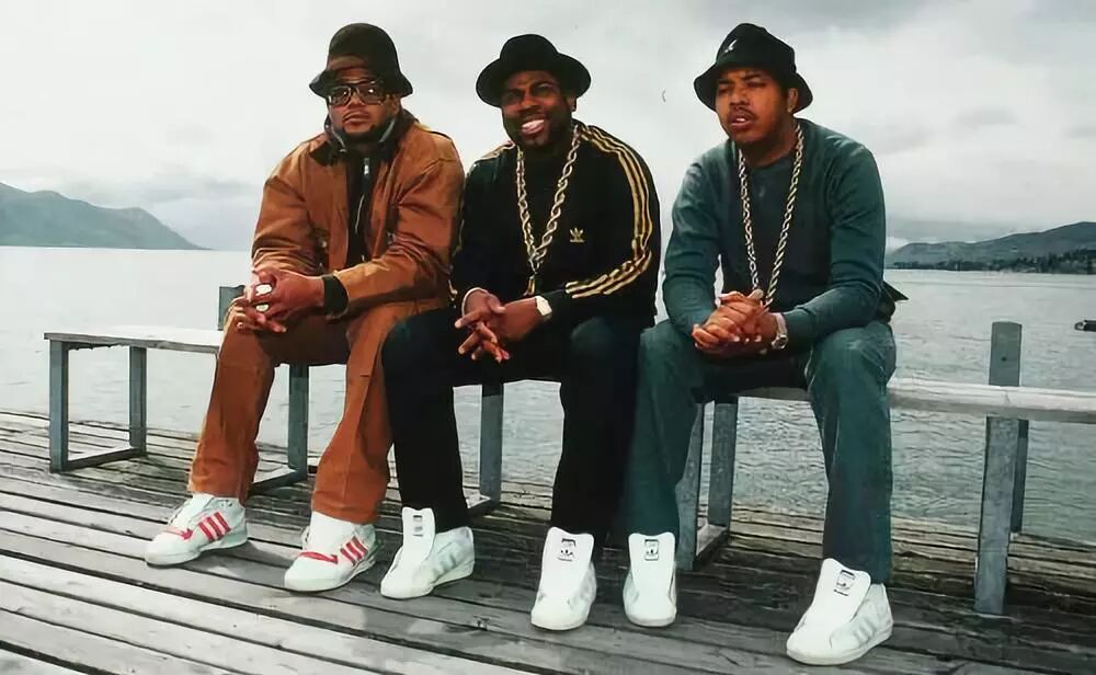 还好后来出现一个名为Run-D.M.C的说唱团体,终于把嘻哈文化着装风格拯救到了常规的审美范畴里,他们的主要武器有:阿迪达斯、阿迪达斯和阿迪达斯。