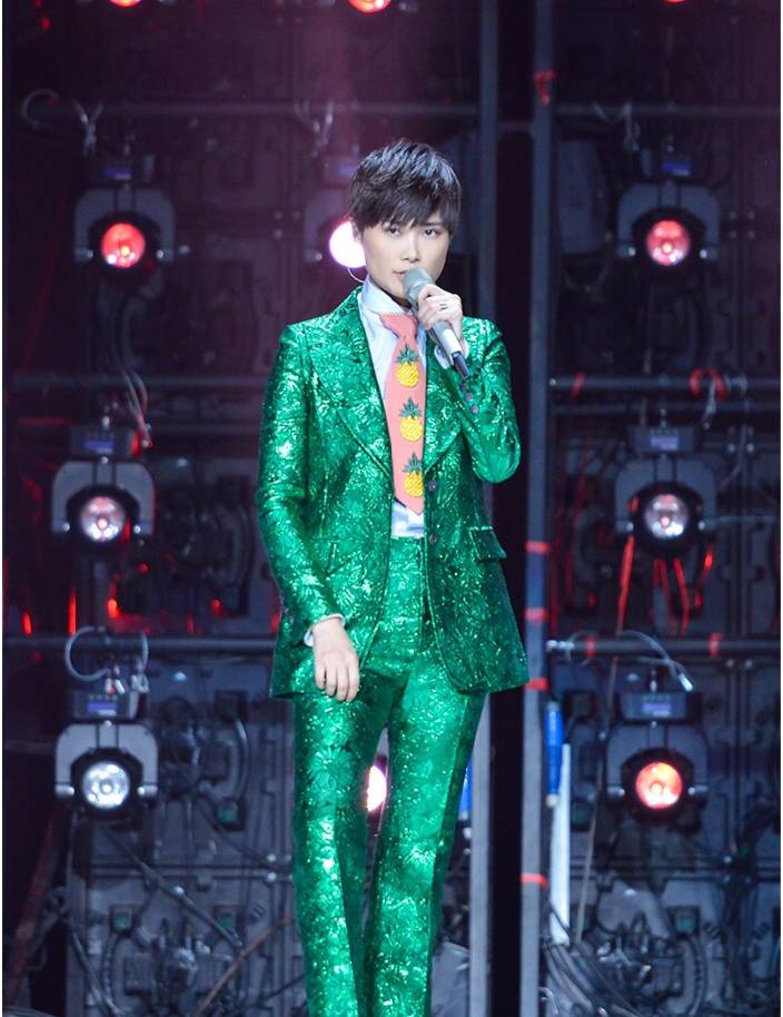在跨年晚会上,李宇春以一席亮丽的绿色西服套装闪耀全场
