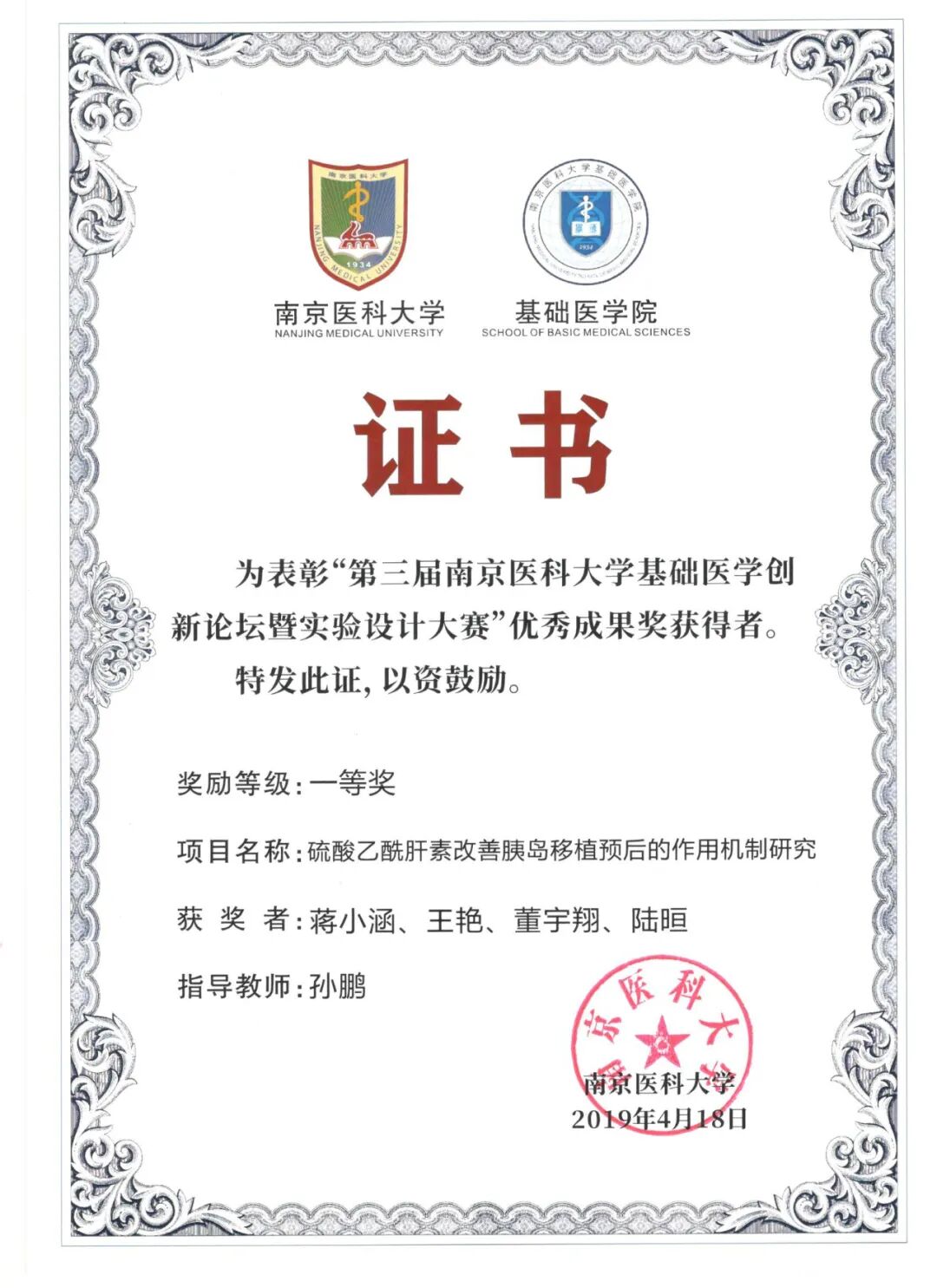 2018年6月,王艳通过大学生创新项目加入孙鹏老师团队。从零做起的王艳面对更大的挑战,此时实验室基础成为最大的帮助。经过不懈努力,加上科研日常和论文撰写经历,她获得了实验设计大赛一等奖。