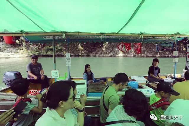 船到终点时,一艘犹如水上便利店的船只靠近我们,游人们可以买些饮料、烤串、烤鱿鱼之类的零食,据说这条船也是拥有百年历史的老铺,由第三代掌管之中。