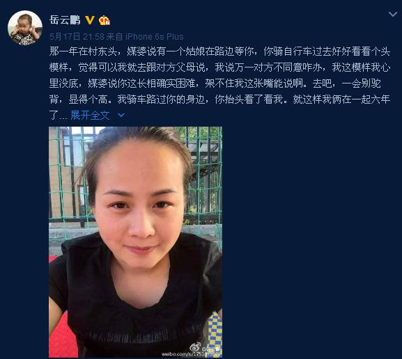 (岳云鹏的情感状况,外界普遍不了解,5月17日晚,岳云鹏在微博中晒出妻子照片为其庆生,难得的在微博上秀了一次恩爱。岳云鹏的妻子郑敏也在微博中转发了该微博,并称:“谢谢老公!”)