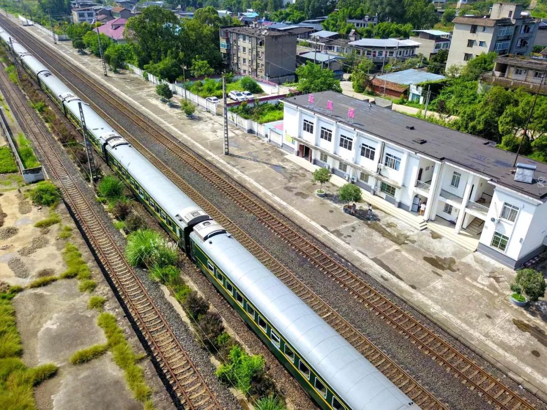 五凤溪火车站是成渝铁路的一座只有三条站线的五等小站,每天都只办理货物列车的交会或待避等接发车业务,并没有旅客乘降。然而,在这个坐落在沱江边的小站空地,却停留着一列并不打算出发的列车。