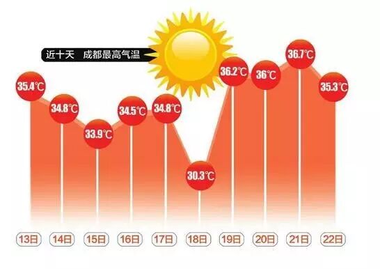 据@成都气象,成都午后到夜间虽有分散性阵雨或雷雨,个别地方雨量偏大,但最高气温仍可达36℃。