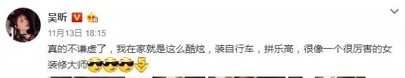 看吴昕发出来的图片,拼乐高、组装自行车,这宅女也是被她当出了意义。