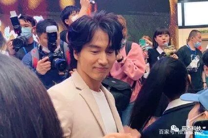来到天津宣传新电影,米色西装搭配牛仔裤,很帅。 不减当年,板着脸拍照