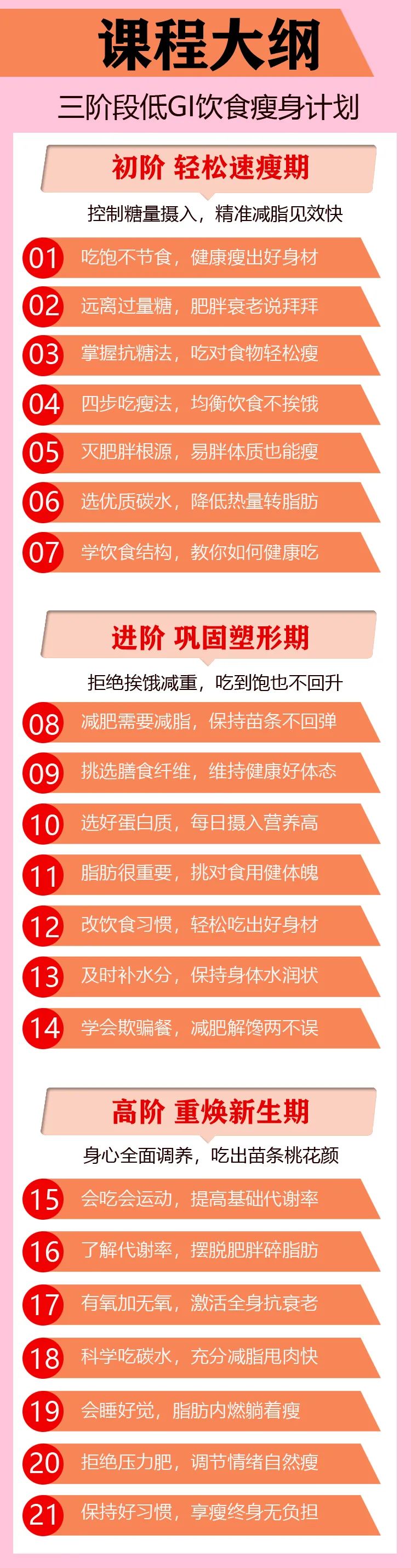 经过3个月的打磨,结合3000+学员的真实案例,打造出这套《21天低GI抗糖饮食法》。