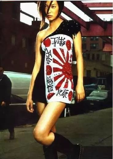 1.赵薇2001年曾在穿着以日本军旗为设计灵感的服装,登上时尚杂志