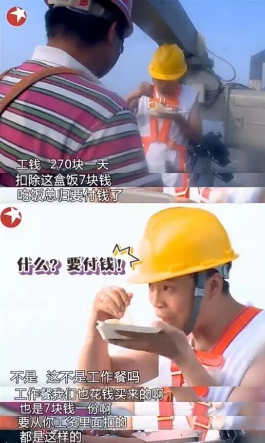 而高空作业的工人们甚至连吃饭的地方都没有,只能在施工电梯上临时填饱肚子,饭前也要从工资中扣除。
