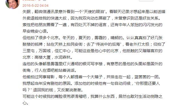 带着小心翼翼的卑微想抓住每一份工作机会,看了这条微博后更加睡不着了,其实大叔也是个有梦想的人吧,他向往自由自在的生活,向往北京的繁华,纵使工作很辛苦他也积极的纪录当下。