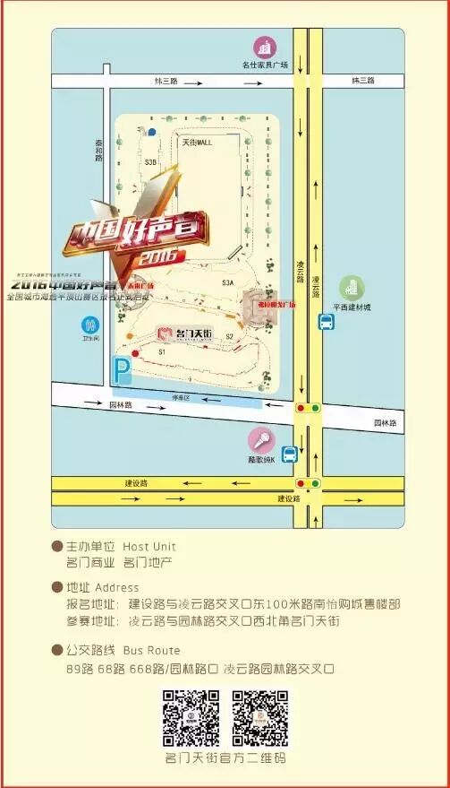 比赛地址:凌云路与园林路交叉口向西100米路北怡购城名门天街未来广场