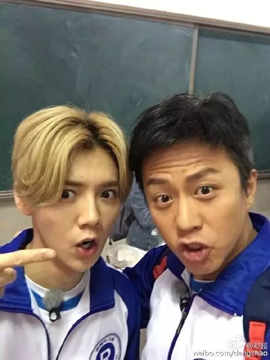 3月25日,邓超在微博晒出与鹿晗调皮合影,同时留言称,“儿子,明天是你人生中第一次个人演唱会,爸爸为你骄傲,开完演唱会就把婚结了吧,儿媳妇们嗨起来”。照片中,二人身穿学生装,皱眉对嘴,模样搞笑。