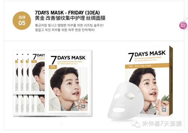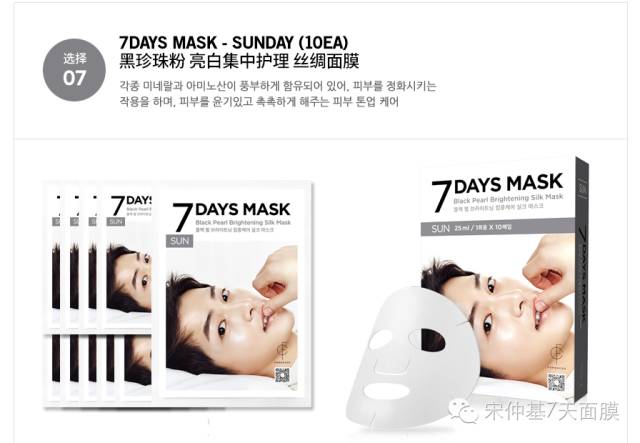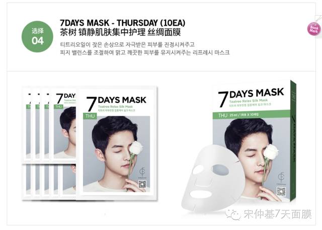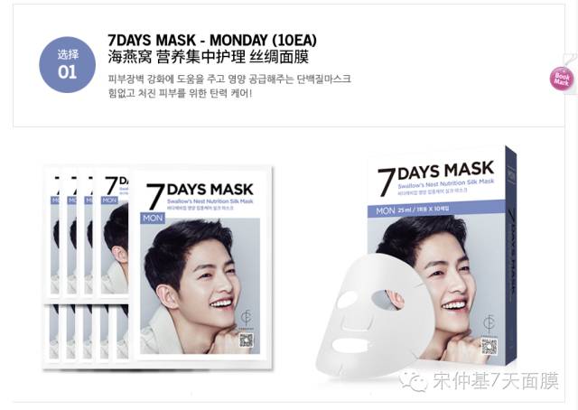 1988年成立,有着30多年历史的FORENCOS,不仅有宋仲基7天面膜,陆续还会有以宋仲基为模特的其他产品出示,请大家多多关注哦。
