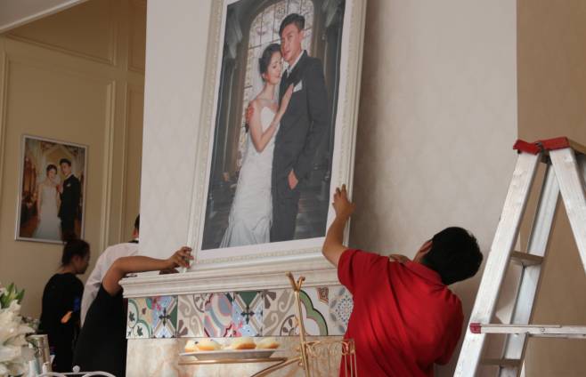 下面是他们在拍摄一场求婚的戏,浪漫的让人羡慕。