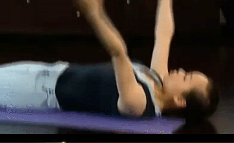 Step3:仰卧。腰背部练习。双手掌心向下,垫于腰下,吸气时收紧腰背部,悬空上提,保持10秒。呼气时将腰部慢慢放下。每天3到4次,每次4到6个。有助于缓解腰部肌肉紧张。