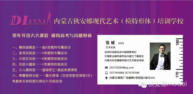 武文杰:之前我就是一个普通的女孩,唯一的区别就是个子有点高。那年的我和现在校园里常见的瘦高个女孩子没什么区别,像我这般条件的内蒙古美少女其实还有很多,如果你的家人也能支持你,建议你来我们狄安娜模特艺校,我相信你日后的成长和转变会像童话里灰姑娘一样,登上这神奇的水晶鞋,开启你的时尚人生,也从此踏上摩登之旅。”