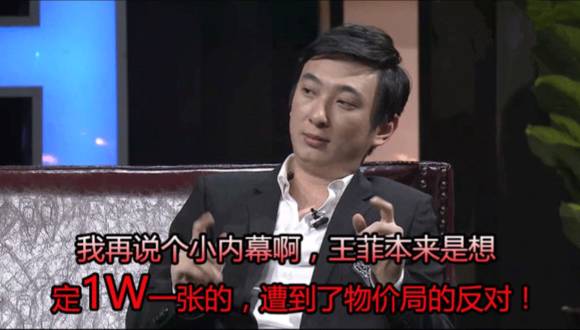王菲演唱会天价票,他透露天后原想将演唱会票价定一万,结果遭到物价局否定。