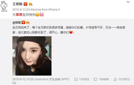 杨幂过生日,特意送上祝福。