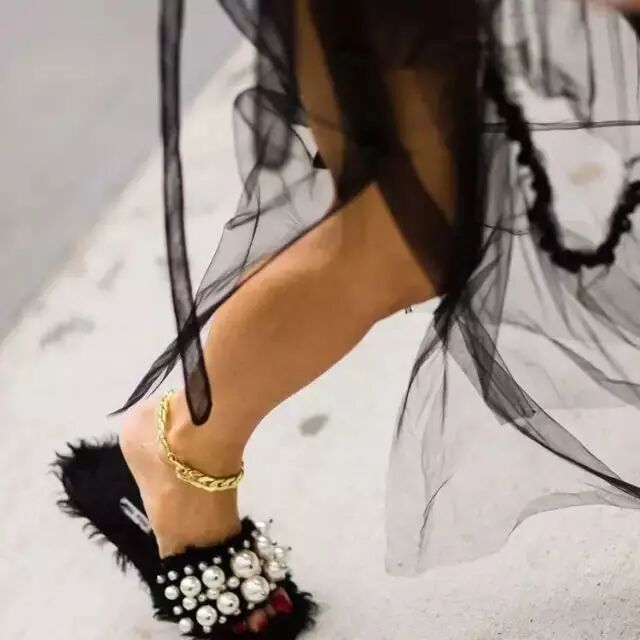 miumiu的珍珠拖鞋:真够耀眼的,不过下图的样式估计很少人能穿得出去。