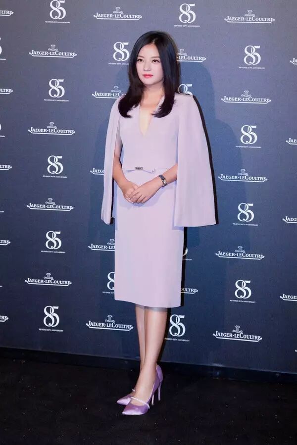 赵薇穿上则是成熟的感觉,淡淡的紫色明艳动人但不会过分的张扬。紫色不是太好搭配,同色系搭配就几乎没风险了。