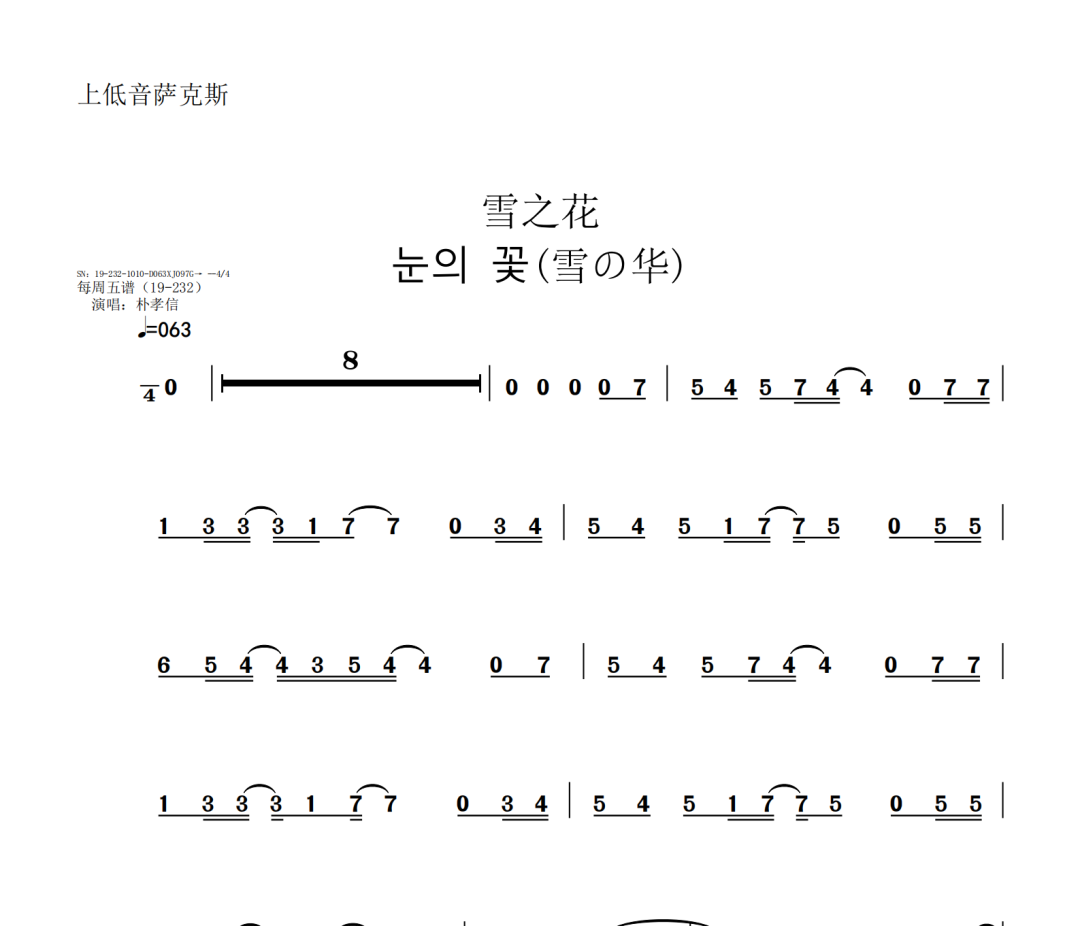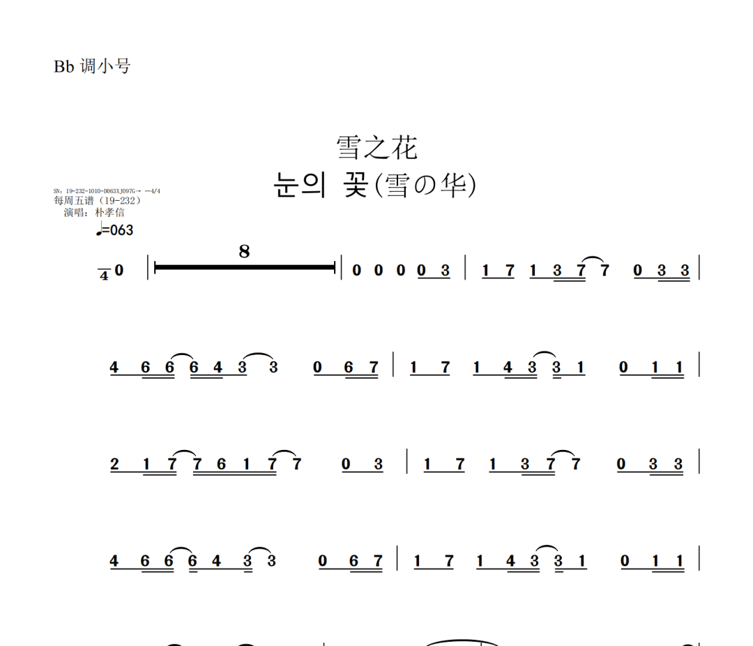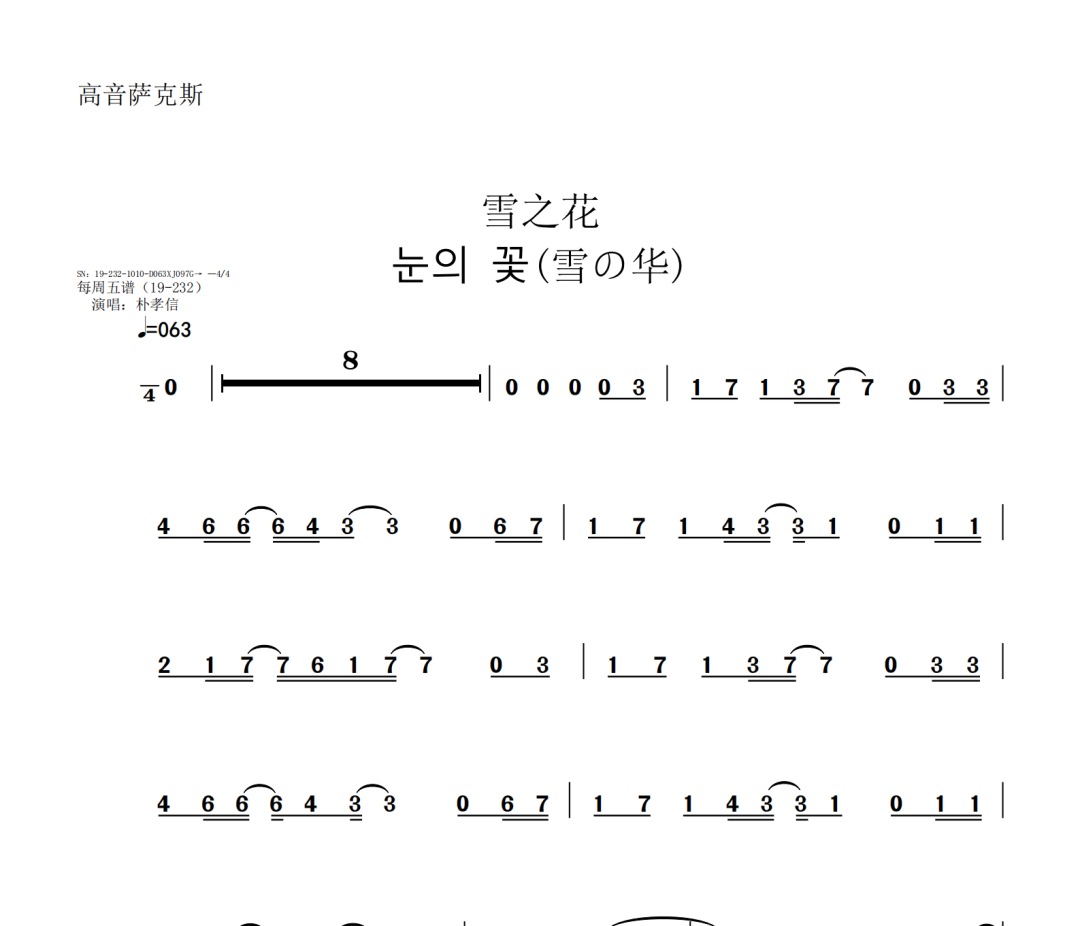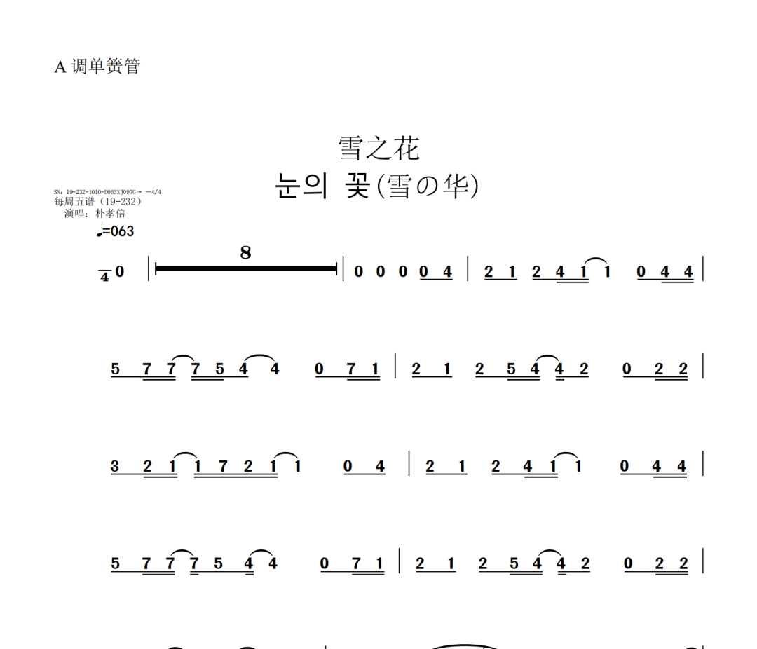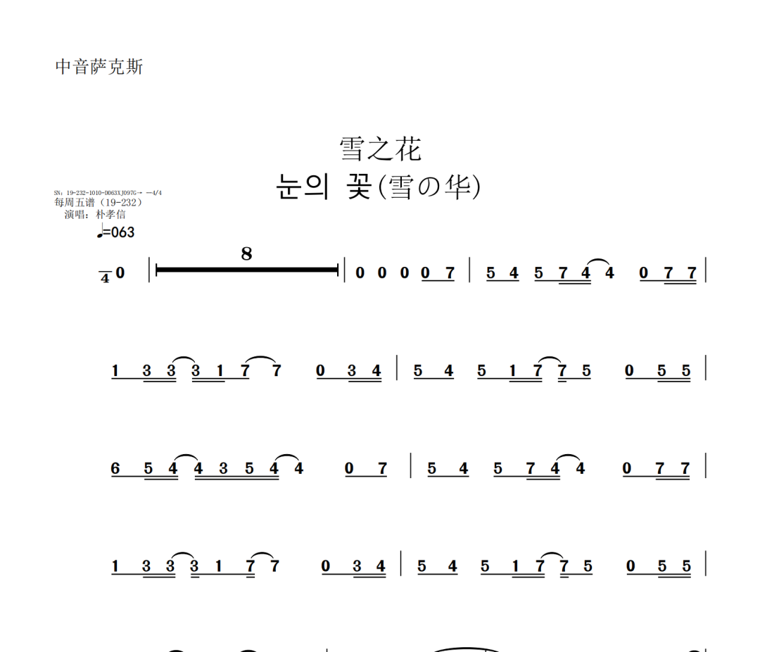 (一种乐器谱子原调+原歌曲伴奏音频)