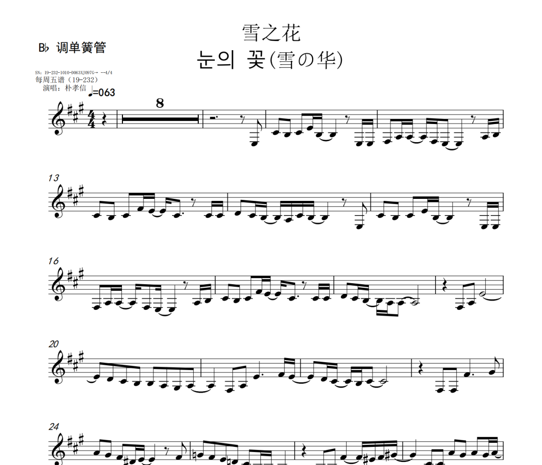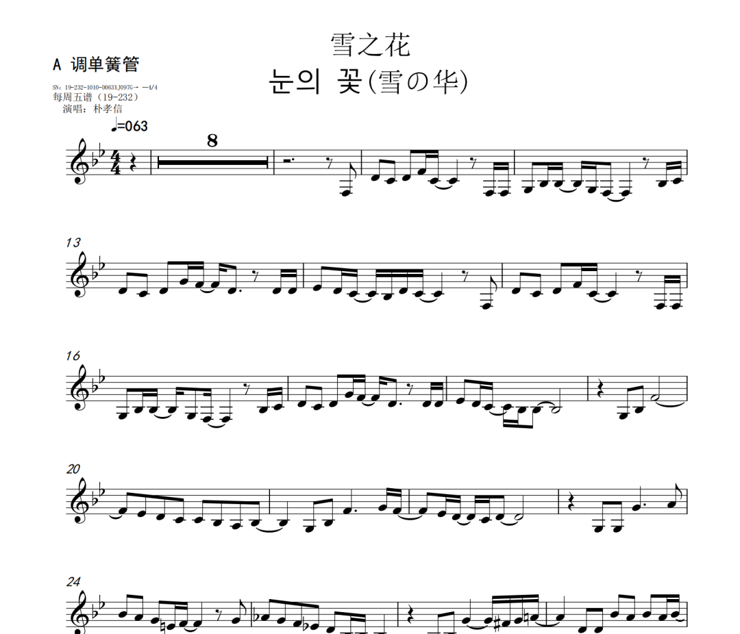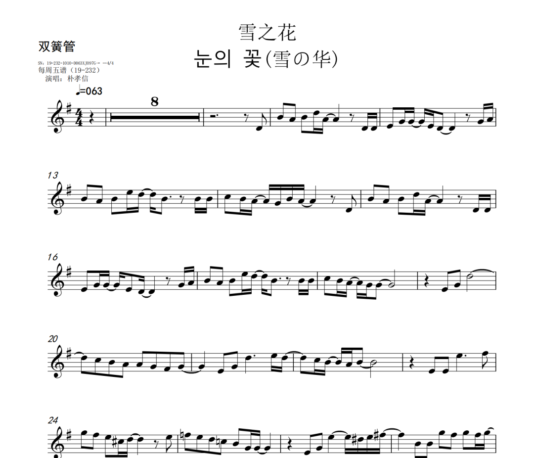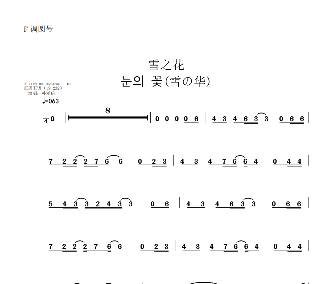 (一种乐器谱子原调+原歌曲伴奏音频)
