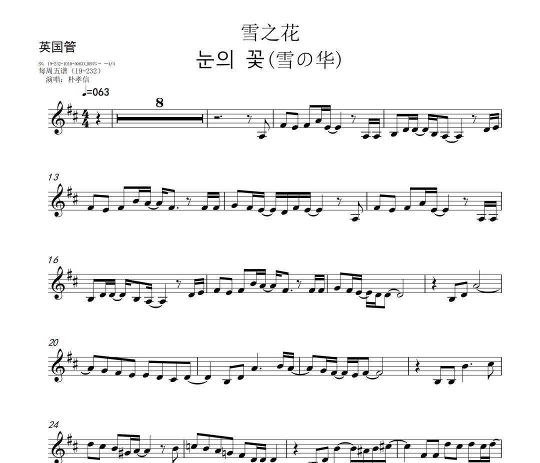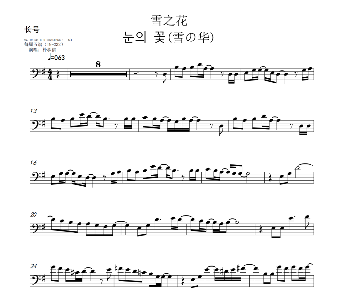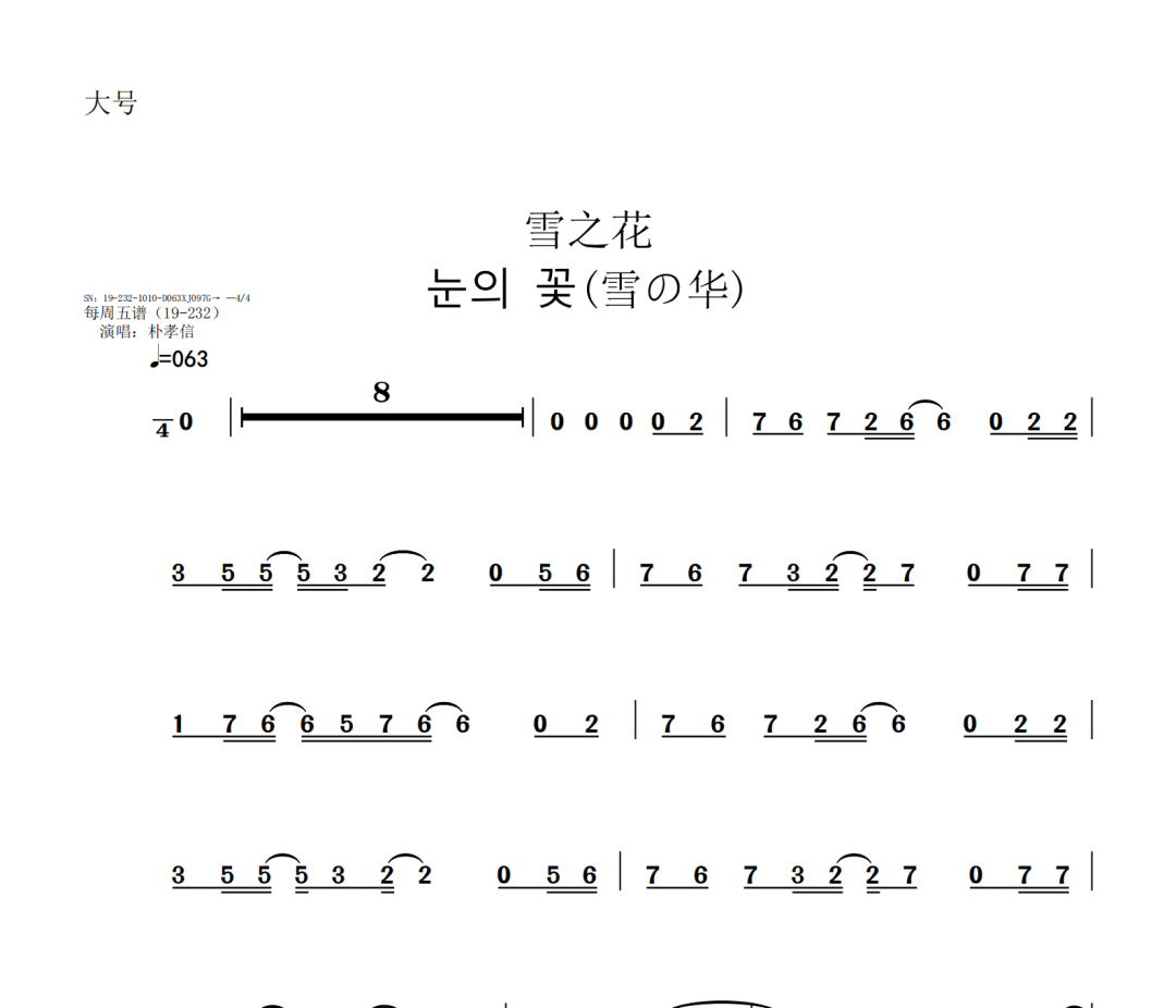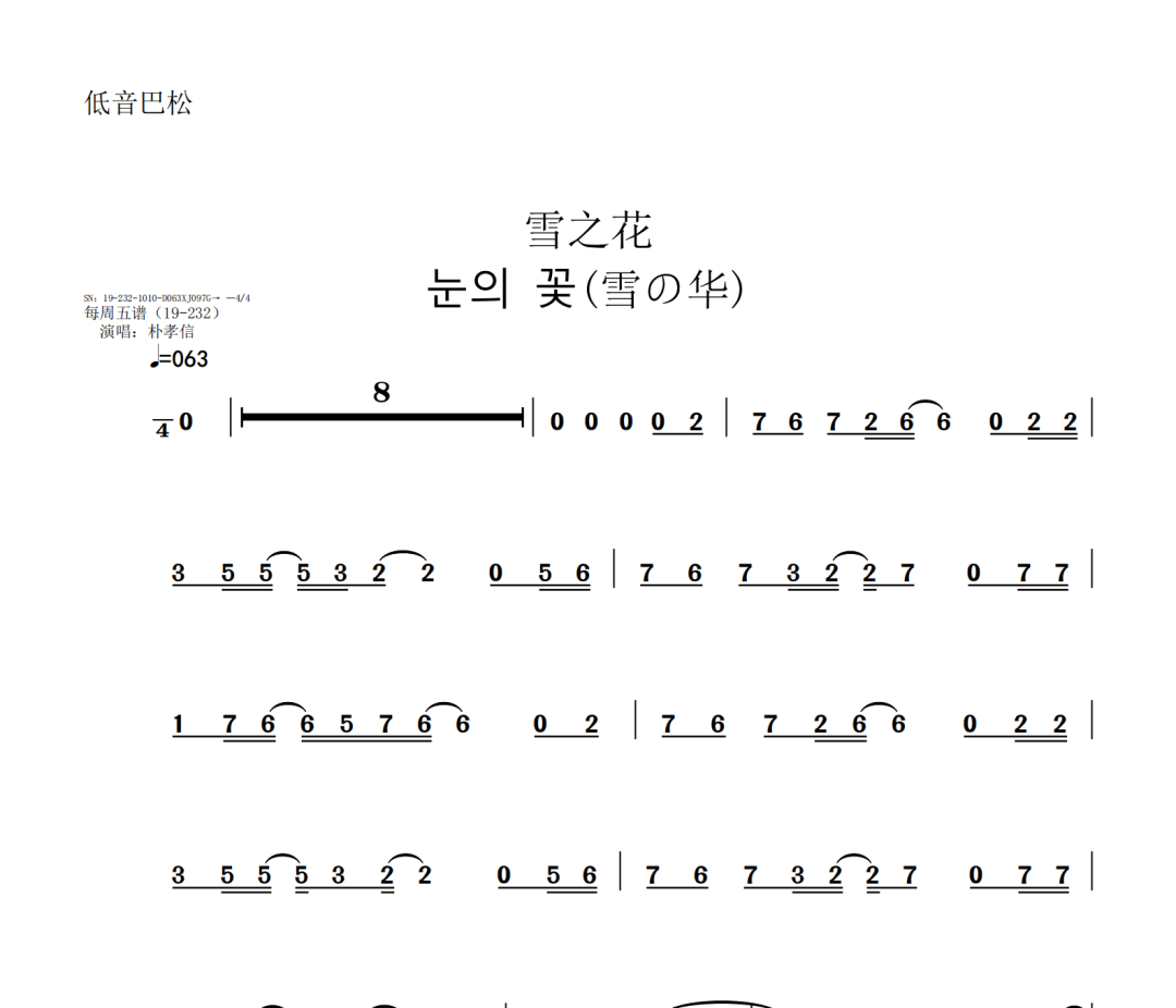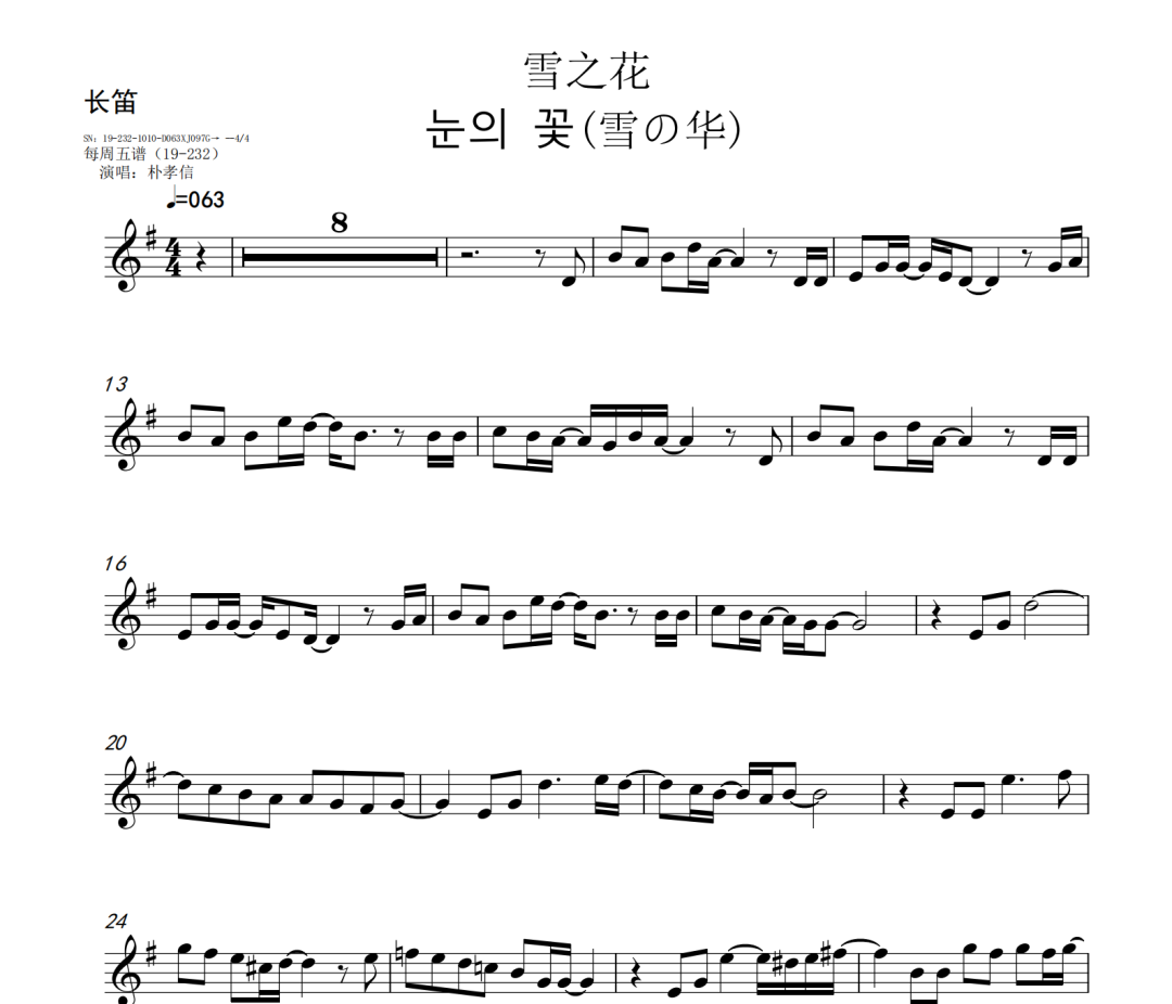 (一种乐器谱子原调+原歌曲伴奏音频)